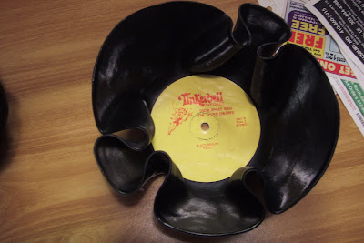 So I tried something that I've wanted to do for a while now. Making bowls from records. I know it's been done before...a lot...but it's still way fun! Especially since the Salvation Army down the street sells old crappy records for .25. So here's what it did!