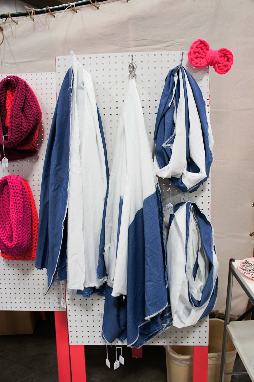 Out of all the new scarves I made for the show, I think I'm most proud of the dip-dyed denim ones.  I just used bleach to create some really fun color-blocking and textures on the denim.  Would you be into a DIY post about it?  It definitely took a lot of trial and error to find the right technique for these lil guys.
